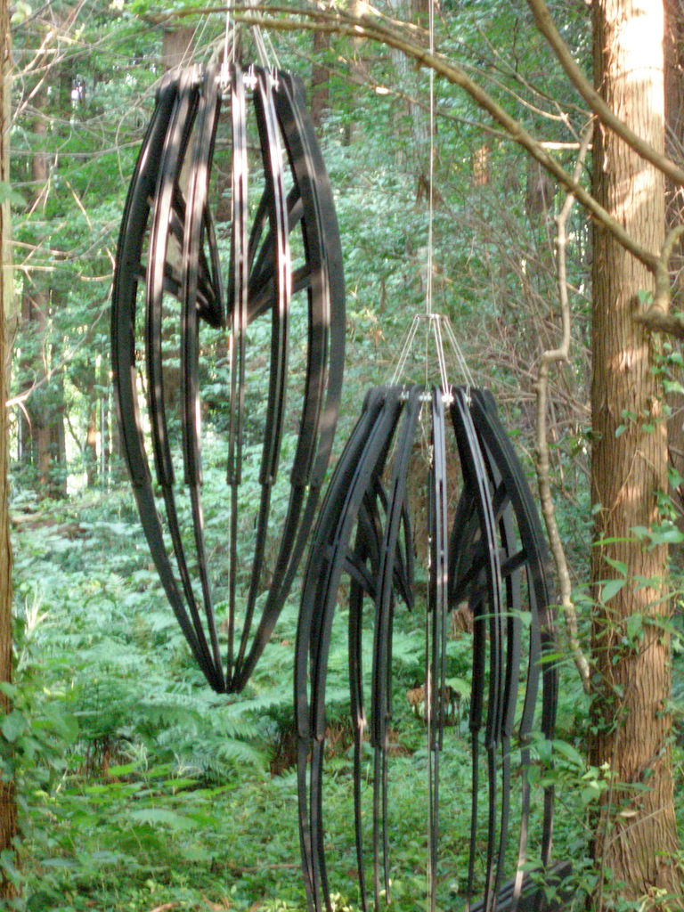This work was made for a green zone in Yokohama – in a lush forest surrounding the Yokohama zoo. The beautiful lush wildness of the little forest was amplified by the smells and calls of the wonderful animals held captive in the zoo beyond.